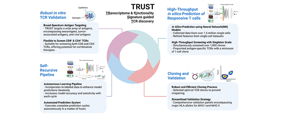 AI驅(qū)動(dòng)的高通量平臺(tái),結(jié)合單細(xì)胞轉(zhuǎn)錄組與功能分析技術(shù),快速發(fā)現(xiàn)治療性TCR克隆,大幅縮短TCR藥物開發(fā)周期并降低成本。